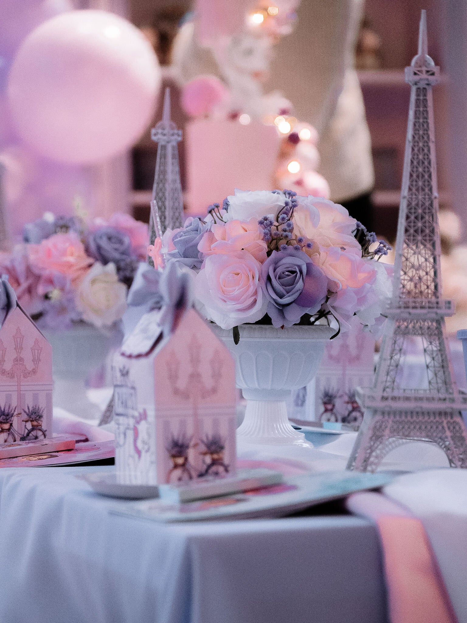 Lila & roze kinder tafelboeketten